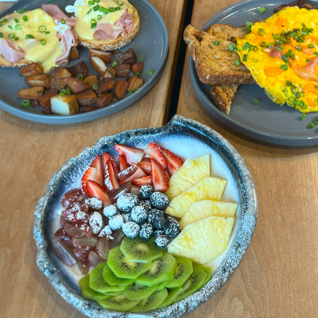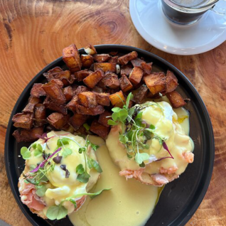 Avocado, smoked salmon, chives, sour cream, poached egg, herbs & olive oil on a toasted all-grain bread
